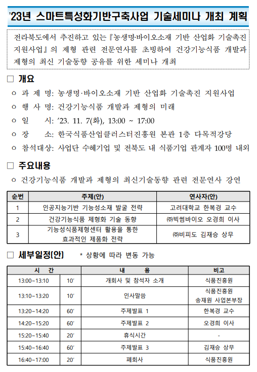 • 2023. 11. 07. 2023년 스마트 특성화 기반 구축사업 기술세미나 개최